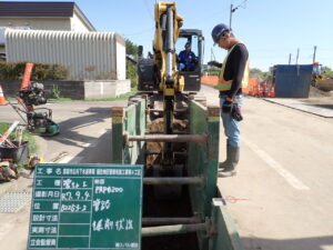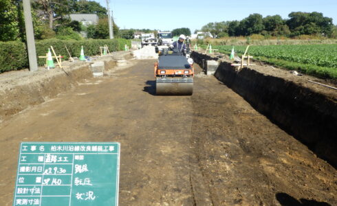 令和7年度 恵庭市公共下水道事業 福住地区管渠布設工事 第4工区 発注者:恵庭市公営企業 工事場所:恵庭市福住 管路掘削 缶布設 大豆乾燥調製貯蔵施設取付道路新設及び根志越3号倉庫前... 柏木川沿線改良舗装工事